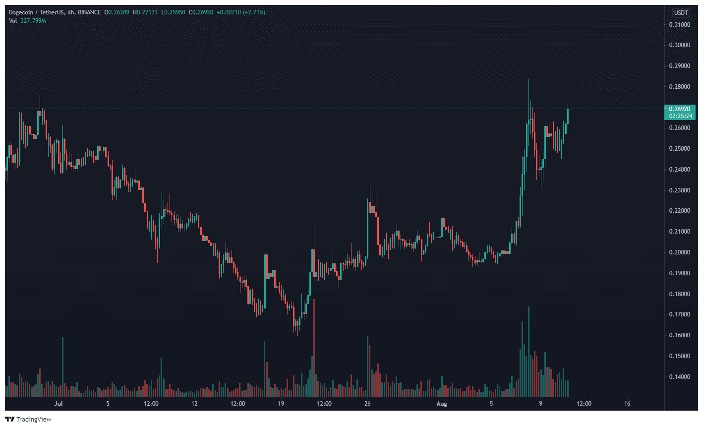 Veľký obrat Dogecoinu prišiel 20. júla, čiže presne v deň, kedy Bitcoin dosiahol významné dno na úrovni 29 500 USD. Údaje od Cointelegraph Markets Pro dokazujú, že v prípade DOGE sme aktuálne svedkami až 78 % nárastu.