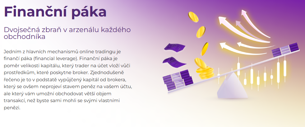 Jedným z hlavných mechanizmov obchodovania na Purple Trading je finančná páka. Umožňuje obchodovať s väčším objemom peňazí, než reálne máte. Broker vám poskytne kapitál na znásobenie vašej investície. To môže zaručiť vyšší zisk, ale aj väčšie straty. Maximálna dostupná páka je na platforme dostupná pri forexe, konkrétne 1 : 30. K dispozícii je aj páka 1 : 500, avšak len pre tých, ktorí splnia podmienky pre profesionálneho klienta.