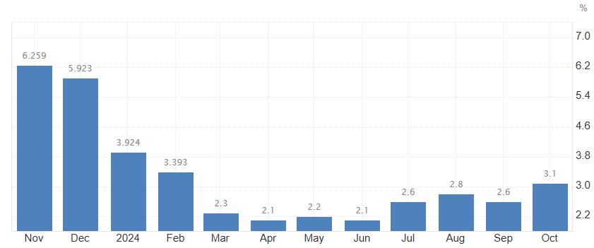 Od júla tempo rastu cien prevažne mierne rastie, keďže v druhom kvartáli sa inflácia pohybovala okolo úrovne 2,2 %. Na základe údajov Trading Economics je súčasná inflácia na Slovensku na úrovni 3,1 %. Ide o najvyššiu mieru od februára, čo bolo spôsobené predovšetkým zvýšením cien potravín a nealkoholických nápojov (5 % oproti 3,1 % v septembri).