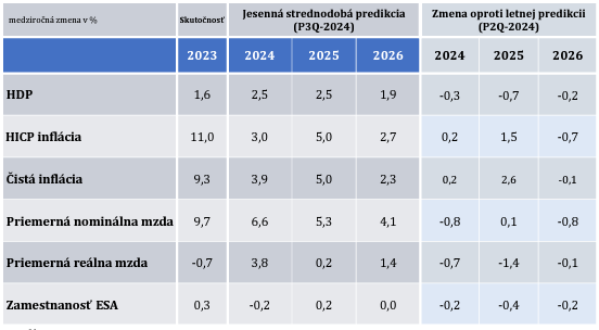Predpoveď makroekonomických ukazovateľov. Zdroj: NBS