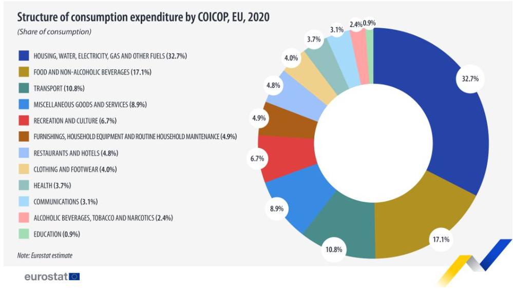 Výdavky domácností v EÚ. Zdroj: Eurostat
