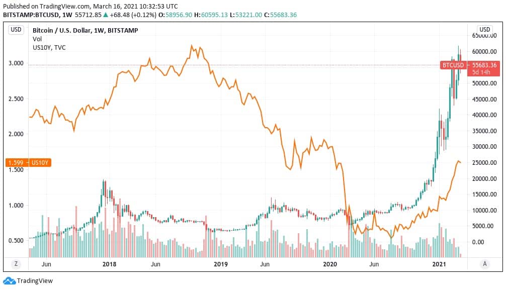 Zisky z 10-ročných amerických dlhopisov vs. Bitcoin