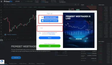 Po kliknutí na register sa dostanete na stránku, kde si môžete vytvoriť vlastný účet. Na registráciu okrem mailu nie je nič potrebné. Dokonca, čo je veľká výhoda, tak účet si môžete založiť aj cez Google alebo Facebook. Tým sa výrazne uľahčí proces a nebude potrebné zadávať ani email. Súhlasíte s podmienkami burzy a váš účet je pripravený na trading. Overenie ID, bydliska alebo pasu táto burza nevyžaduje. Prvý vklad teda môžete uskutočniť bez námahy a čakania na overenie vášho účtu.