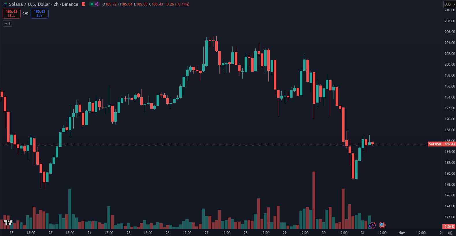 Podľa údajov z TradingView cena Solany po spustení obchodovania s novým Grayscale Solana ETF paradoxne klesla približne o 7 %.