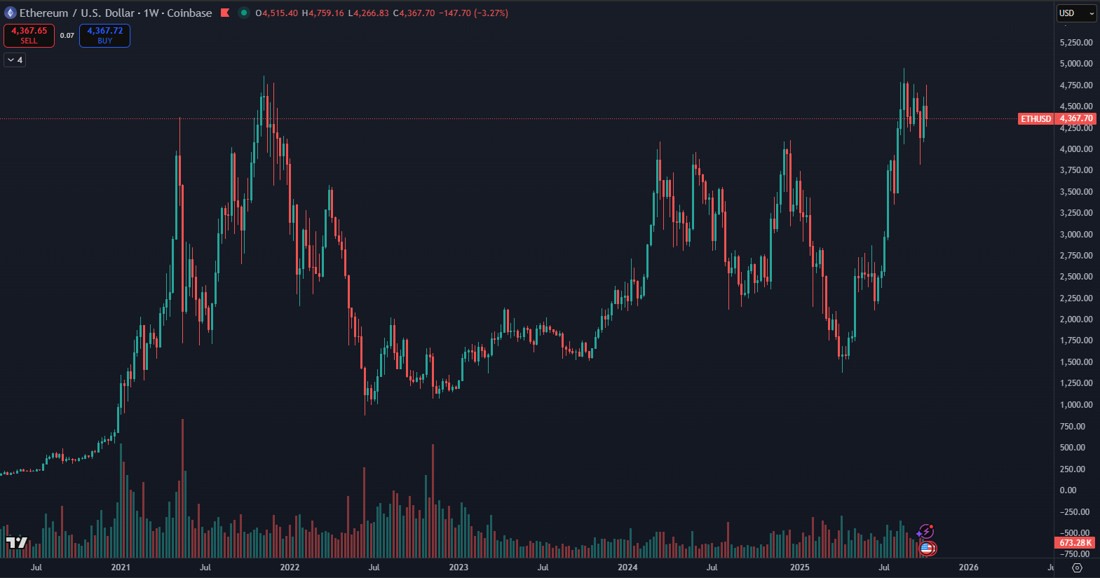 Ethereum si zároveň v auguste pripísalo nové historické maximum, čím potvrdilo, že digitálne aktíva nadobúdajú stále väčší význam ako investičné útočisko. Podľa údajov CoinMarketCap dosahuje Ethereum v čase písania cenu 4 368 dolárov a trhovú kapitalizáciu 527,36 miliardy dolárov.