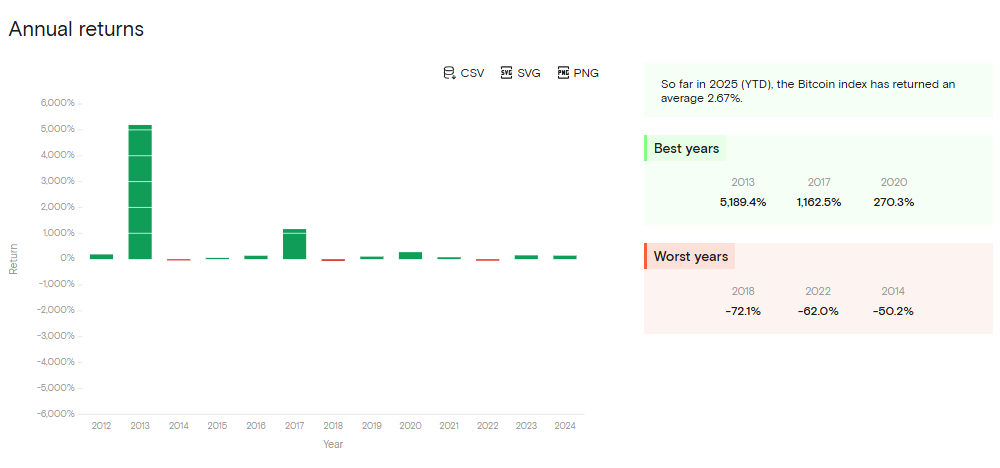 Robert Kiyosaki vychádza zo skúseností z minulosti, keďže Bitcoin dlhodobo vykazuje výrazný rast. Aj keď v budúcnosti už pravdepodobne nebudeme svedkami tak masívnych zhodnotení ako v minulosti, volatilita tejto kryptomeny zostáva vysoká.