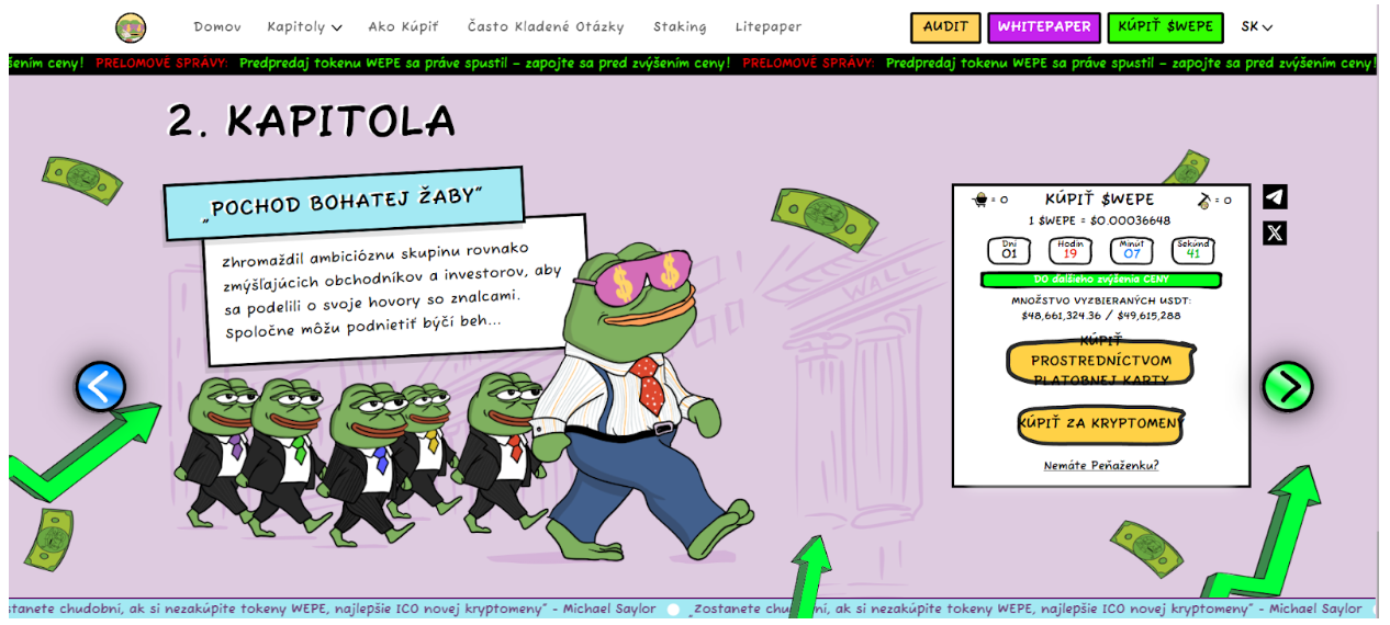 Investori už vyzbierali neuveriteľných 48 miliónov dolárov, no ešte stále máte šancu byť medzi úplne prvými držiteľmi tokenov WEPE a získať ich za zvýhodnenú cenu. Bližšie informácie nájdete na stránke predpredaja.