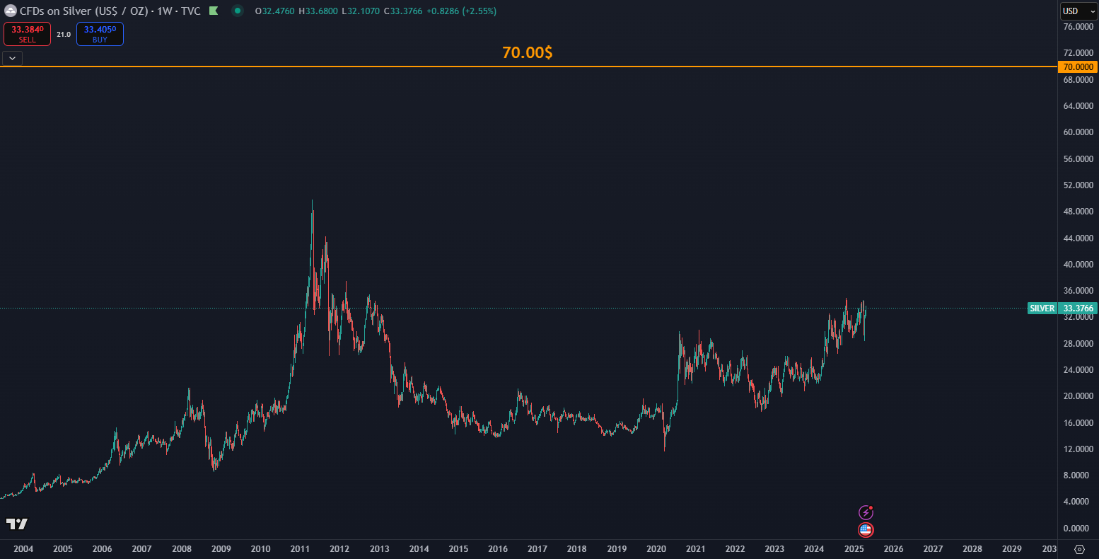 Striebro za 70 dolárov. Zdroj: tradingview.com
