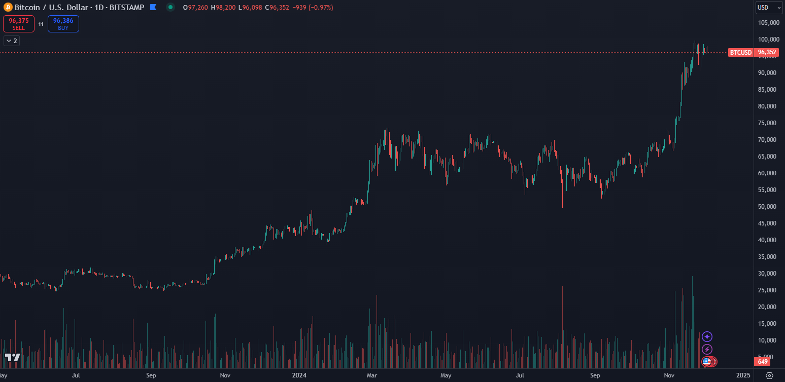 V súčasnosti sa Bitcoin obchoduje okolo významnej cenovej úrovne 96 300 dolárov, pričom za posledných sedem dní zaznamenal mierny pokles presahujúci 2 %. Napriek rastúcemu záujmu zo strany inštitucionálnych investorov a pozitívnym fundamentálnym ukazovateľom momentálne čelí technickým výzvam pri udržaní kľúčovej podpornej úrovne 95 000 dolárov.