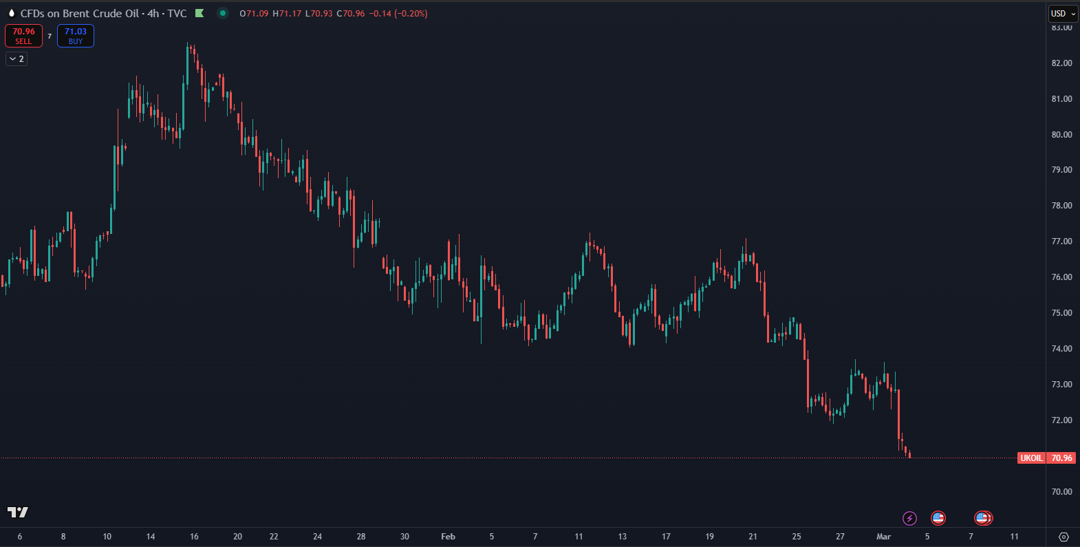 • Cena ropy Brent padla na 70,99 dolárov, čo je úroveň z decembra 2024.