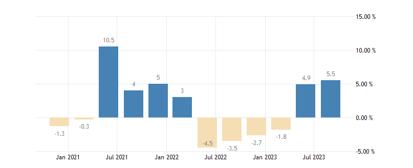 - HDP Ruska vzrástlo v treťom štvrťroku 2023 o 5,5 %
