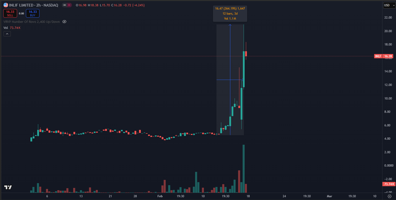Akcie INLIF stúpli o 360 %. Zdroj: tradingview.com