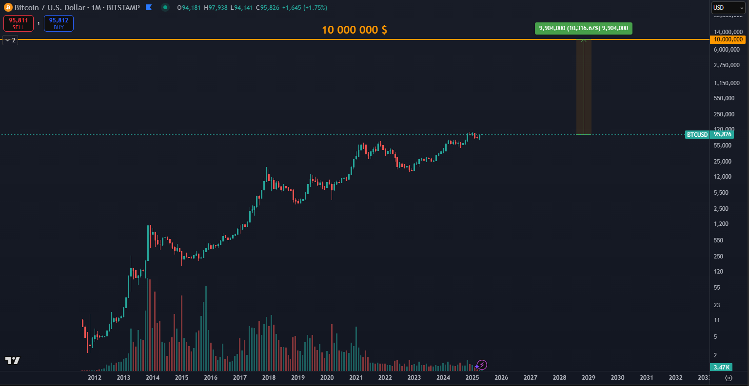 Bitcoin za 10 miliónov. Zdroj: tradingview.com