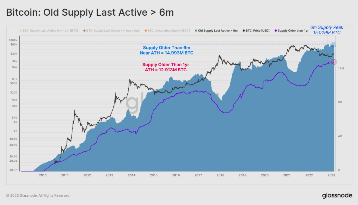 Mince staré viac ako pol roka, predstavujú v súčasnosti až 15 miliónov kusov. Podľa údajov z CoinMarketCap je v čase písania článku vyťažených 19,3 milióna BTC, čo znamená, že títo držitelia zaberajú 77,72 % celkovej vyťaženej ponuky. Preto môžeme vyvodiť záver, že väčšina mincí je v rukách dlhodobých držiteľov.