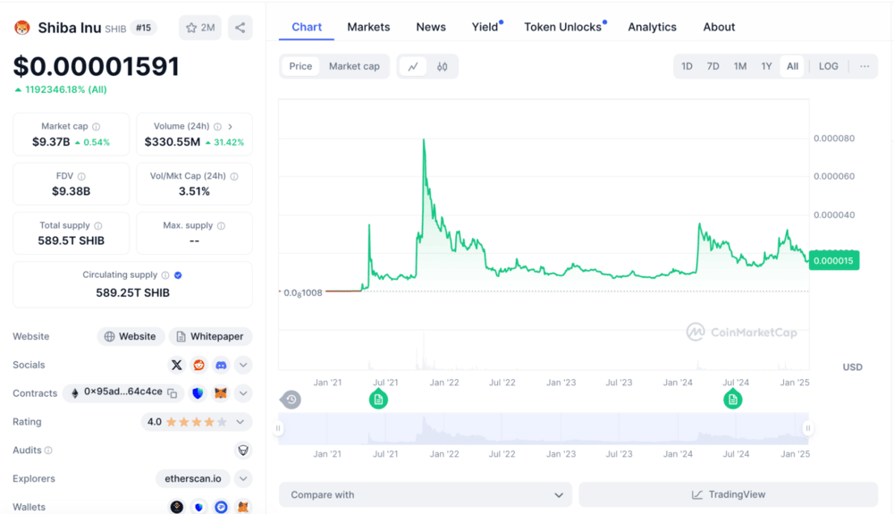 Shiba Inu (SHIB) ide na výpary. Graf je úplne jasný — SHIB zažil svoj explozívny moment, ale ten hype je dávno preč. Token zaznamenal obrovský rast poháňaný špekuláciami, no nedokázal sa vrátiť na svoje maximá. Cena je teraz stagnujúca bez náznaku prerazenia.