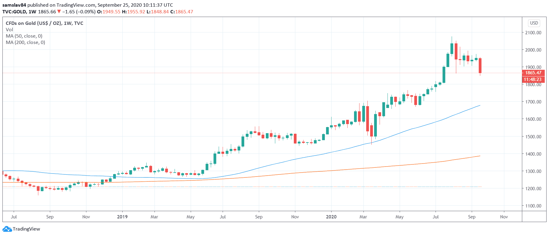 Kapitálové trhy po celom svete za sebou majú veľmi nepríjemný týždeň. Hodnota väčšiny akcií a vzácnych kovov klesá. Americké akciové indexy za sebou majú štvrtý červený týždeň v rade. Naposledy sme niečo podobné zaznamenali na prelome februára a marca tohto roka. Investori, ktorí svoje peniaze ukryli do zlata či iných vzácny kovov však na tom nie sú o moc lepšie. Ako včera napísal Jaroslav, zlato má za sebou najhorší týždeň.
