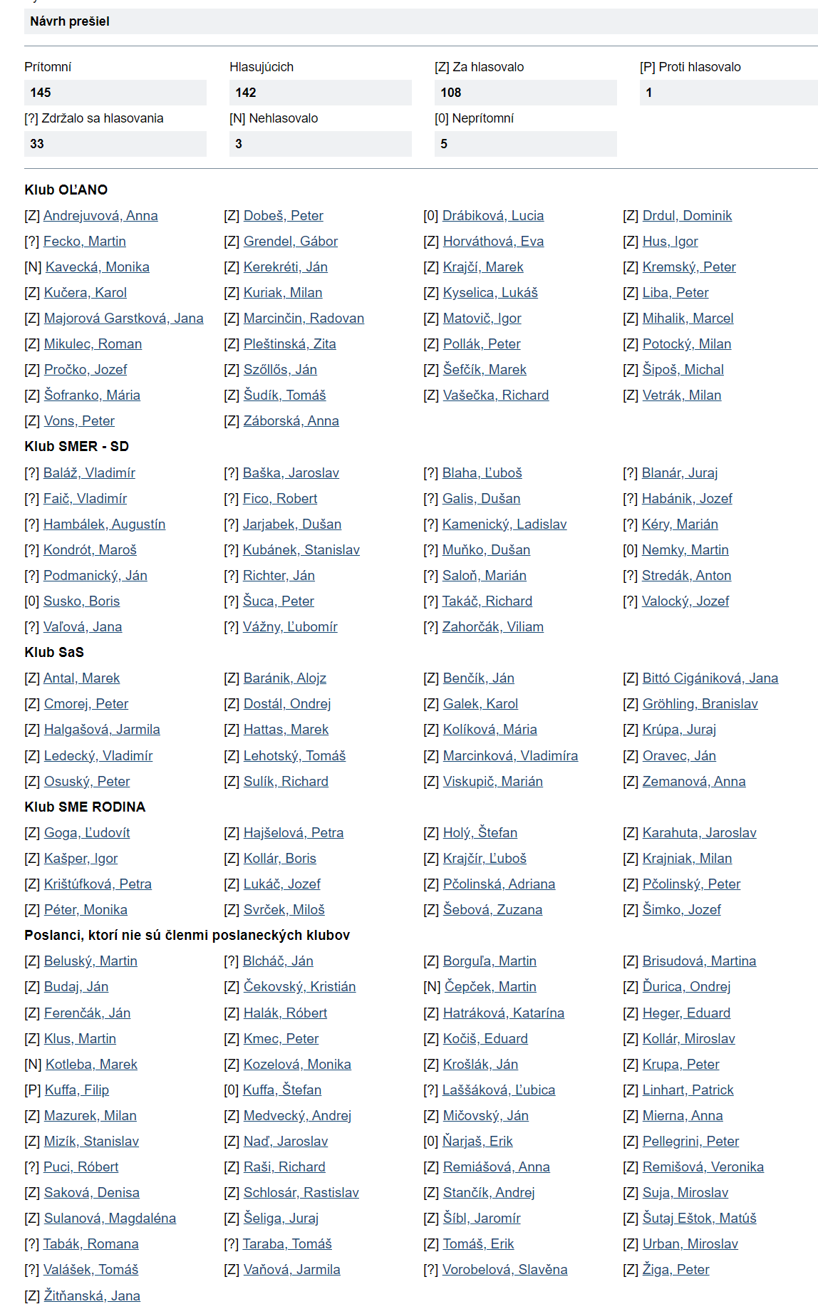 Zákon podporilo celkovo 108 poslancov naprieč takmer všetkými poslaneckými klubmi. 33 sa zdržalo, 3 poslanci nehlasovali a 5 nebolo prítomných. Pred schválením malo Slovensko najhoršie daňovo-odvodové zaťaženie uvalené na kryptomeny. Zo zisku investori museli odviesť 33 % resp. 39 %.