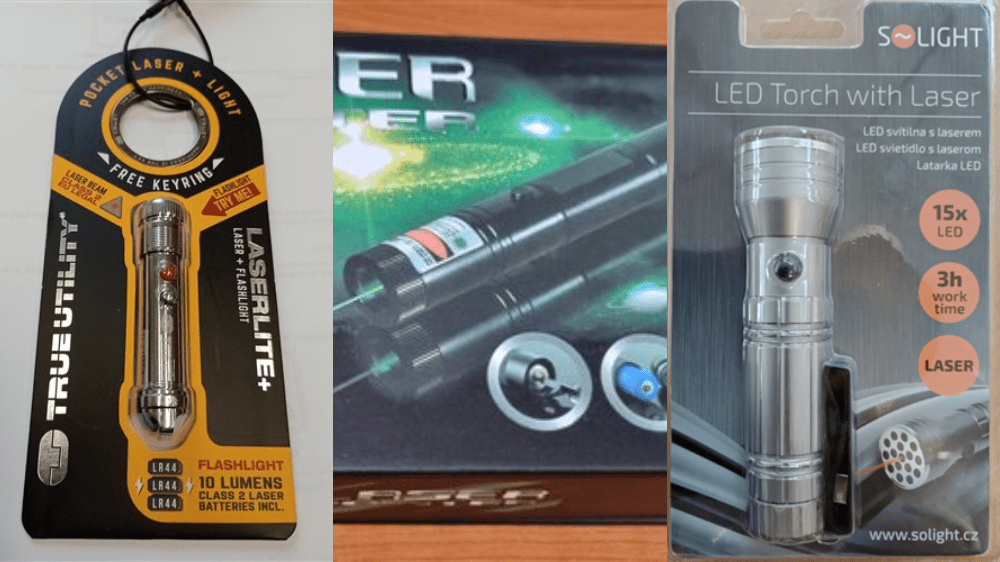 Tentokrát ide o niekoľko laserových ukazovadiel a LED svietidlo, ktoré môžu predstavovať vážne riziko pre zdravie, najmä pre váš zrak.