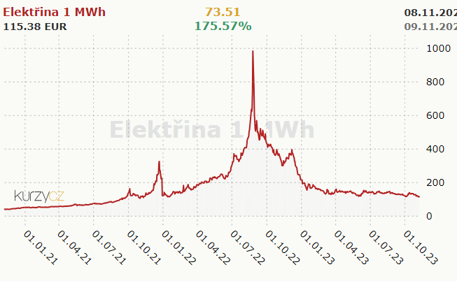 Trhová cena elektriny. Zdroj: Kurzy.cz