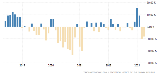 Stavebná produkcia na Slovensku podľa posledných údajov Tradingeconomics medziročne klesla až o -8,3 %. Ide o veľké spomalenie v oblasti stavebníctva už druhý mesiac po sebe. Je to obzvlášť alarmujúce číslo. Na základe posledných dostupných záznamov je na tom horšie ako Slovensko už len Maďarsko a Estónsko a to spomedzi všetkých krajín na svete.