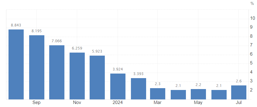 V roku 2024 sa predpokladá, že inflácia bude naďalej klesať, ale zostane vysoká. Prenos cien energií a potravín do ostatných tovarov a služieb pokračuje a práve túto oblasť najviac pociťujú spotrebitelia. Podľa údajov Tradingeconomics je inflácia na Slovensku na úrovni 2,6 %, čo predstavuje polročné maximum. Ak sa inflácia zakorení na zvýšenej úrovni, náklady na financovanie dlhu môžu zostať vyššie.