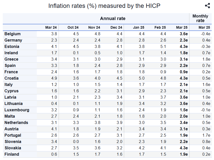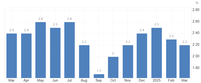 Inflácia v eurozóne mierne klesla. Podľa predbežného odhadu štatistického úradu EÚ Eurostat inflácia v eurozóne v marci 2025 klesla na 2,2 % oproti februárovým 2,3 %. Hoci ide len o mierne spomalenie, trend znižovania inflácie pokračuje už druhý mesiac po sebe.