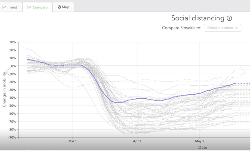 Mnohí občania kritizujú na prvý pohľad radikálne opatrenia spojené s COVID-19. Treba si však uvedomiť, že v porovnaní so zahraničím až také radikálne nie sú. Dňa 29.05. premiér Slovenskej republiky Igor Matovič zdieľal na Facebooku graf zmeny mobility na Slovensku počas krízy.
