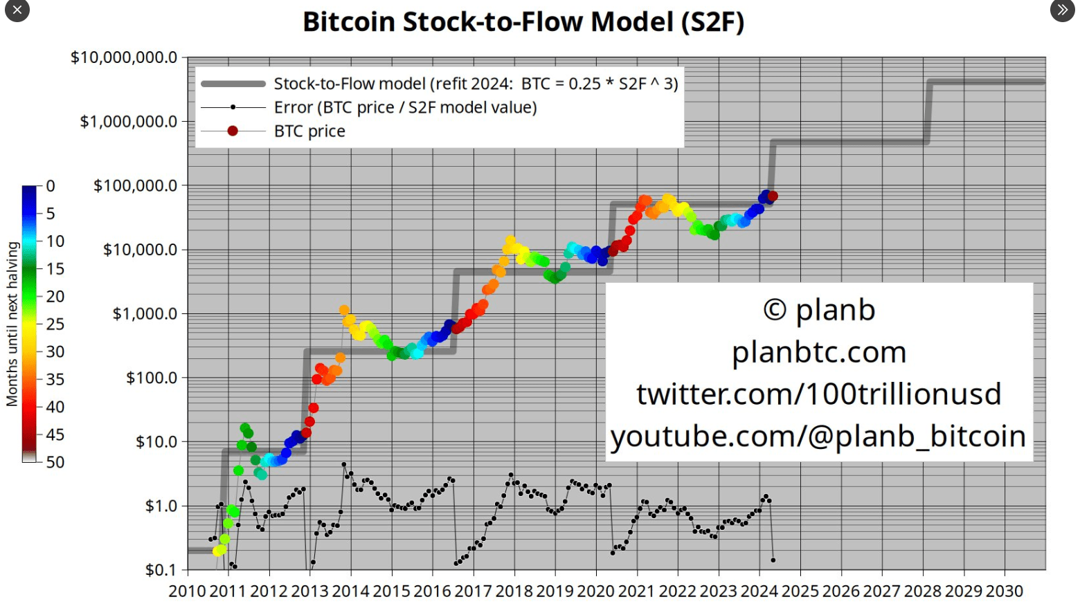 Zaujímavosťou je, že PlanB pred rokom v máji 2023 verejne predpovedal, že Bitcoin dosiahne 100 000 dolárov už pred halvingom. Napokon sa tak nestalo a ledva prekonal 70 000 dolárov.