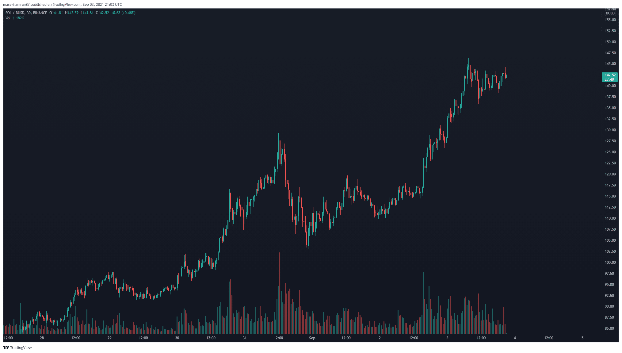 V čase písania tohto článku bola cena za SOL na úrovni 142 USD. Už teda nie sme ďaleko od predikcie skúsených traderov, ktorí SOL vidia až na cene 200 USD.