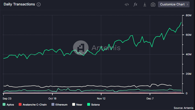 Najnovšie správy o Solane ukazujú nárast transakčnej aktivity v sieti. Solana dosiahla nový rekord v transakciách, čo dokazuje jej schopnosť plynulo zvládať veľké množstvo operácií. To posilňuje jej potenciál pre široké využitie a budúce osvojenie. Avšak bezprostredný vplyv na trh bol obmedzený, keďže ľudia sa zameriavajú viac na cenové vzorce než na rast siete.