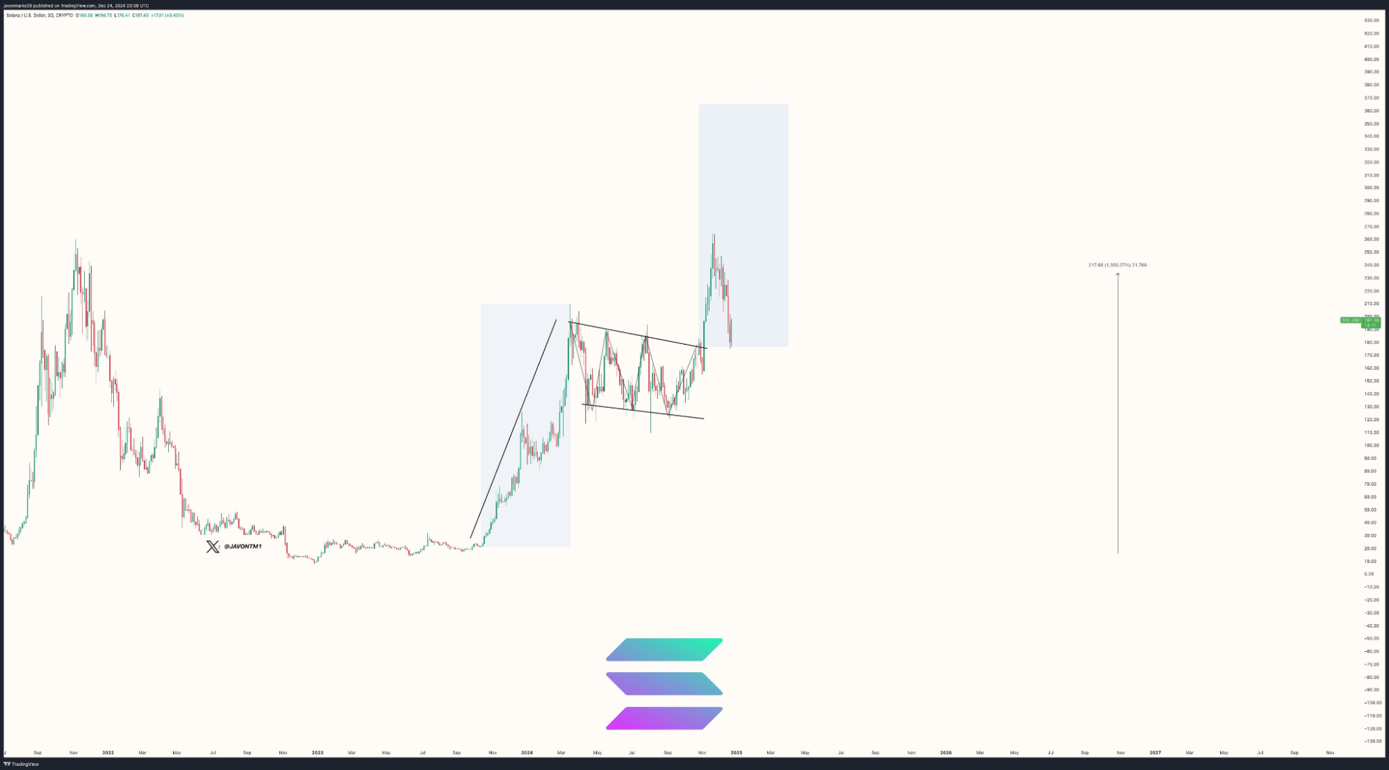S cenou SOL blízko 200 dolárov sa názory na jej krátkodobý smer líšia. Ak cena prekoná 283 dolárov, mohla by vystúpiť na 328 alebo dokonca 360 dolárov. To by zodpovedalo vzoru rastovej vlajky, ktorý zaznamenali experti. Na druhej strane, ak sa cena neudrží nad 200 dolármi, mohla by klesnúť na 173 dolárov alebo dokonca 120 dolárov.