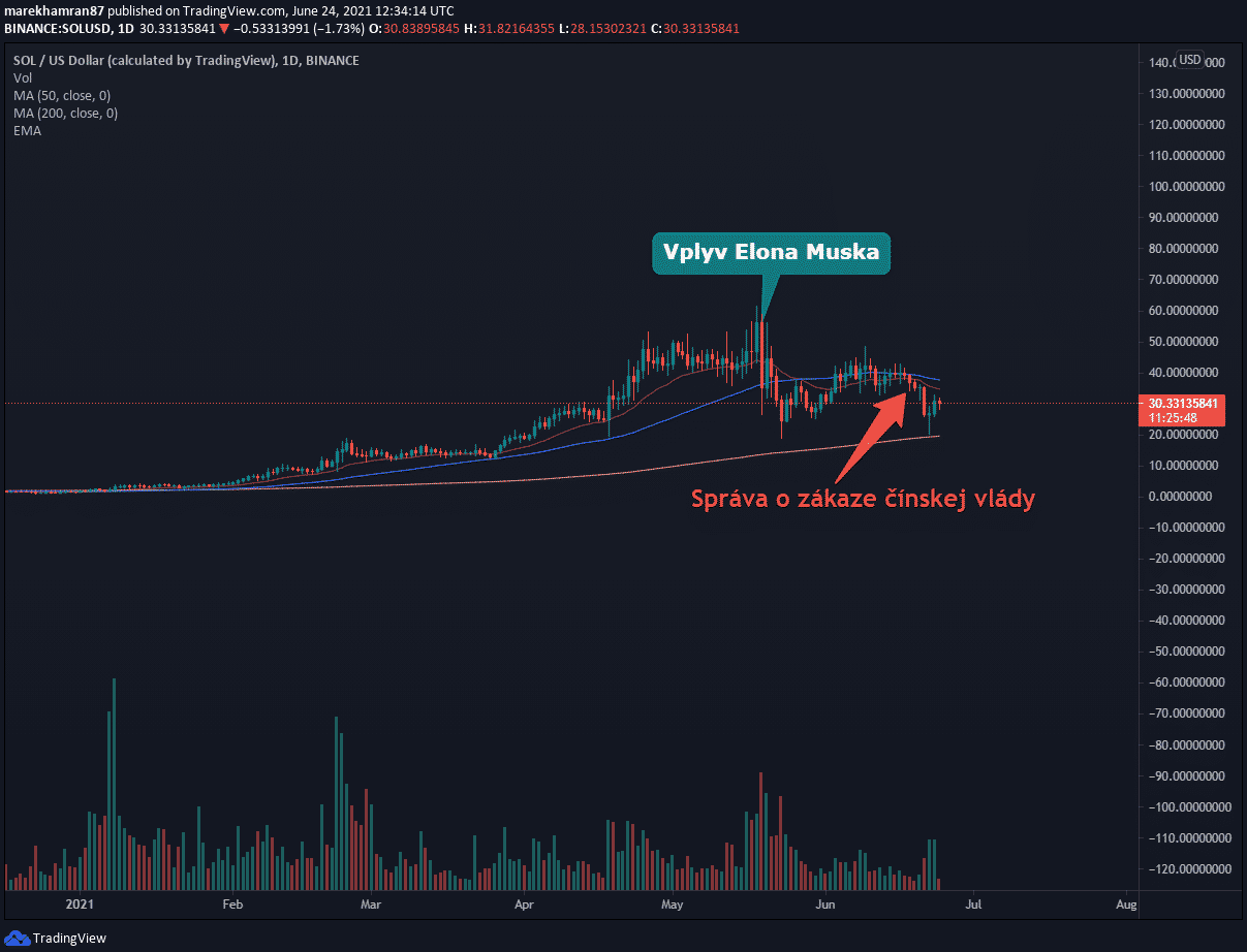 Solana sa začiatkom tohto týždňa prepadla o viac ako 42% po zverejnení správ čínskej vlády o nových zákazoch smerovaných proti kryptomenám. Väčšina kryptomien sa však odrazila od lokálneho dna. V prípade BTC to bol nárast o 19,44% z úrovne 28 800 USD na 34 400 USD. Ethereum sa dokázalo odraziť až o 20,29% na cenu 2045 USD. Víťazom sa však prekvapujúco stal projekt Solana, ktorému sa podaril najvýraznejší odraz zo všetkých kryptomien.