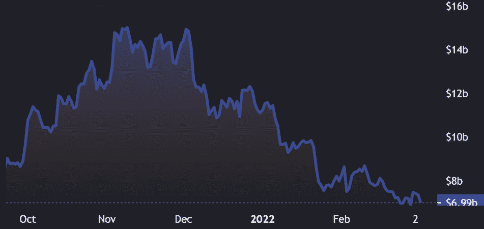 Metrika primárnej decentralizovanej aplikácie (DApp) spoločnosti Solana začala vykazovať slabosť začiatkom novembra po tom, čo celková uzamknutá hodnota siete (TVL) začala padať na úrovni 15 miliárd dolárov.