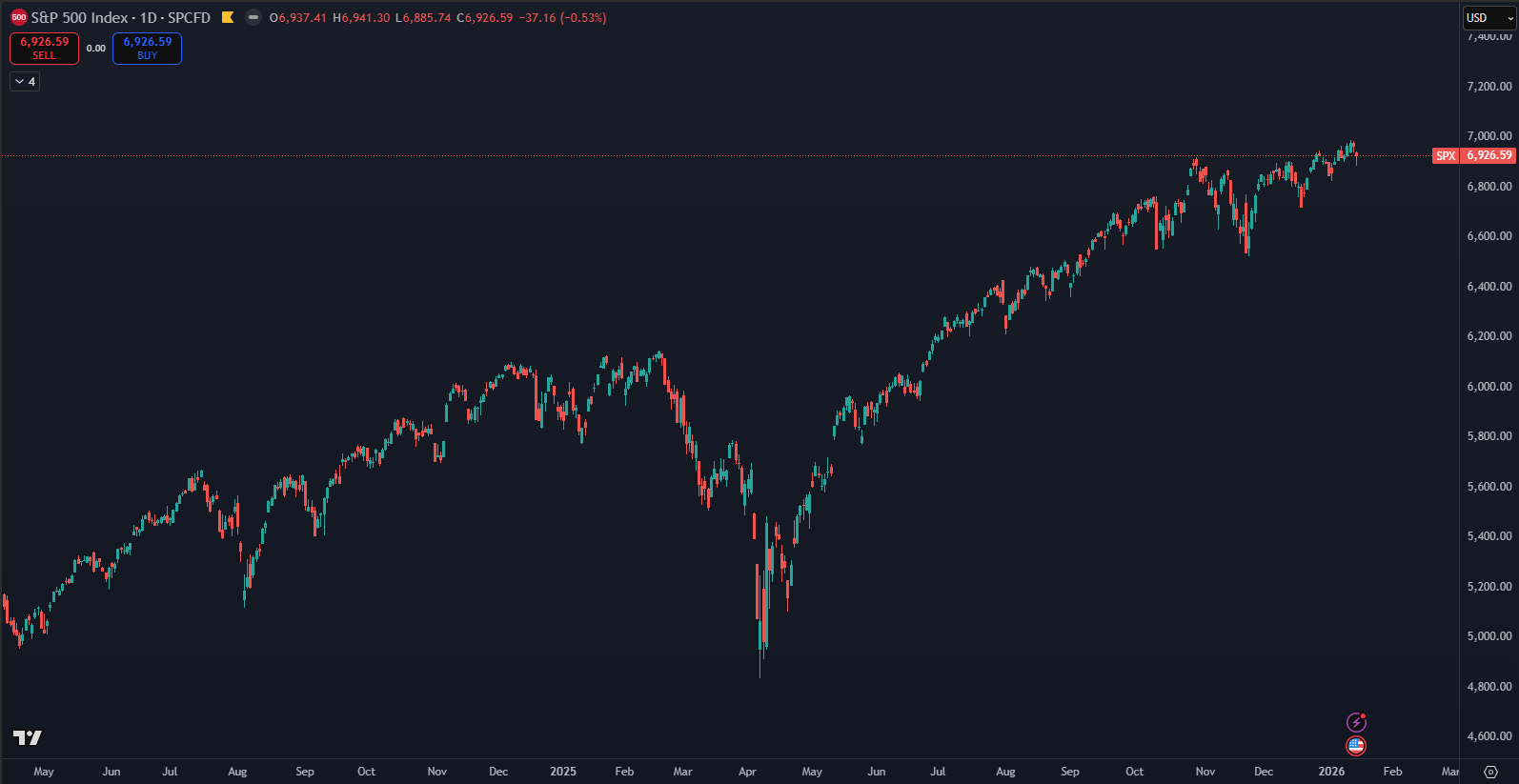 Index S&P 500 začal rok 2026 pozitívne a zatiaľ dosahuje zhodnotenie približne 1 %. Dňa 12. januára bolo dosiahnuté historické maximum 6 986 bodov, ukazujú údaje TradingView. To znamená, že prekonanie psychologickej hranice 7 000 bodov je na dosah. Počas roka 2025 sa objavila len jediná korekcia, ktorá nastala v apríli v reakcii na colnú politiku Donalda Trumpa.