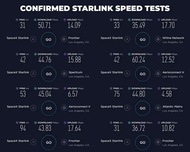Web ArsTechnica oznámil, že podľa ich testov sa download pohybuje od 11 do 60 Mbps a upload je medzi 5-18 Mbps. Na dnešnú dobu nič extra, no pamätajme, že SpaceX musí na obežnú druhá vypustiť tisíce ďalších satelitov, než bude celá sieť pripravená na prevádzku. Latencia sa pohybuje medzi 31 a 94 ms, teda podstatne vyššie než cieľ Starlinku – 20 milisekúnd.