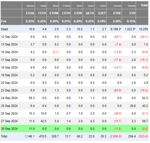 Piatkové prírastky viedol fond FETH od Fidelity s prílevom 42,5 milióna dolárov, nasledovaný fondom ETHA od BlackRock s 11,5 milióna dolárov. Hoci Fidelity zaznamenalo väčší jednodenný prílev, fond BlackRock dosiahol významný míľnik – celkovú čistú hodnotu aktív presahujúcu 1 miliardu dolárov len dva mesiace po spustení. Je to druhý fond, ktorý dosiahol túto hodnotu po Grayscale.