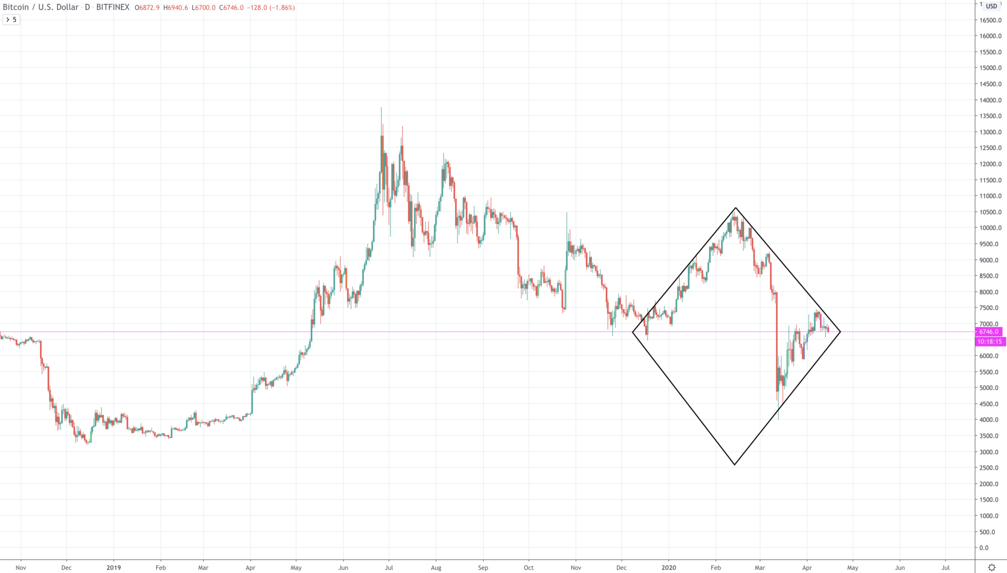 Trh s kryptomenami sa v posledných týždňoch ustálil a Bitcoin sa už dlhšiu dobu pohybuje okolo hladiny 7000 $. To je zaujímavá akumulačná hladina vhodná aj na dokup v prípade, že dlhodobo HODL-ujete BTC. Zdá sa, že sa na nej dlho neudržíme. Na grafe sa nám totiž formuje Diamond pattern!