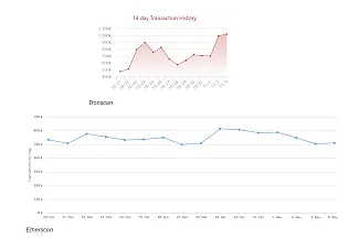 Len dva týždne po prekročení 500.000 transakcií denne dosiahol TRON (TRX) ďalší míľnik. Na prelome 2. až 3. novembra sprocesovala táto sieť, ktorá pôvodne vznikla na blockchaine Etherea, až jeden milión transakcií. Spustenie vlastného mainnetu, akvizícia BitTorrentu, podpora decentralizovaných aplikácií ako aj neustály upgrade siete tak pomohol Tronu predbehnúť svojho konkurenta (Ethereum) v počte spracovaných transakcií v priebehu jedného dňa. Z obrázku nižšie je vidieť, že kým Ethereum za posledné týždne spracováva štandardne 500 až 600-tisíc transakcií, Tron svoje limity posúva vyššie a vyššie.