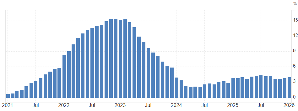 Inflácia na Slovensku za posledných 5 rokov. Zdroj: tradingeconomics.com