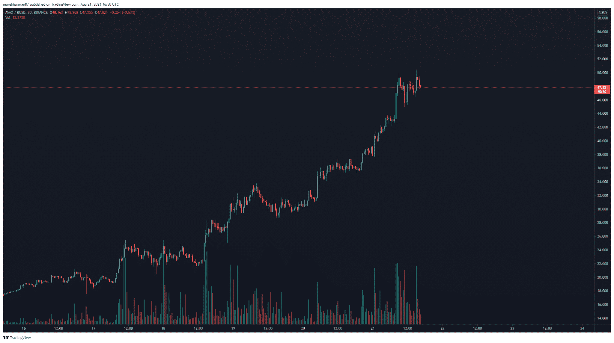 Z hľadiska projektu Avalanche môžeme vidieť taktiež výrazný nárast, ktorý je spôsobený aktualizovaným vývojom ekosystému. V priebehu augusta spoločnosť oznámila dôležitú spoluprácu so sieťou AAVE a Curve. Vďaka tomuto spojeniu bol vytvorený motivačný program na ťažbu likvidity Avalanche Rush v celkovej hodnote 180 miliónov USD. Tento projekt má do ekosystému DeFi priniesť ďalšie aplikácie. Spúšťačom silného rastu bol aj projekt Avalanche Bridge.