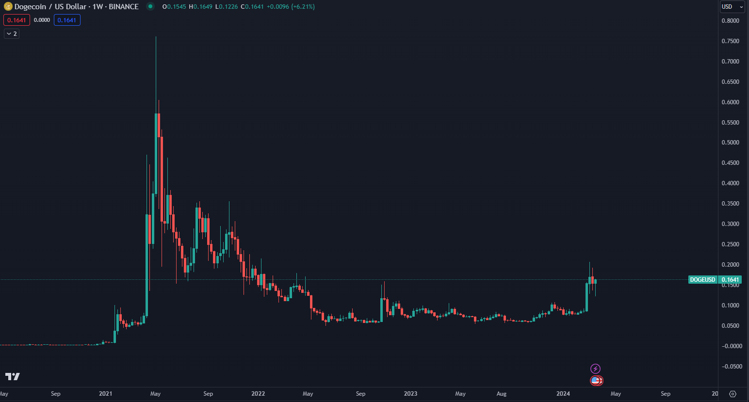 DOGE síce vznikol pôvodne ako vtip, no v súčasnosti je to 6. najväčšia kryptomena na svete za predpokladu, že nepočítame stablecoiny USDT a USDC. Trhová kapitalizácia dosahuje už 23,4 miliardy dolárov a z dlhodobého hľadiska rastie. Denný objem obchodovania prekonal 2,7 miliardy dolárov, čo predstavuje až 11,61 % z celkovej kapitalizácie. Vďaka tomu vidieť, že záujem o obchodovanie s DOGE rastie.
