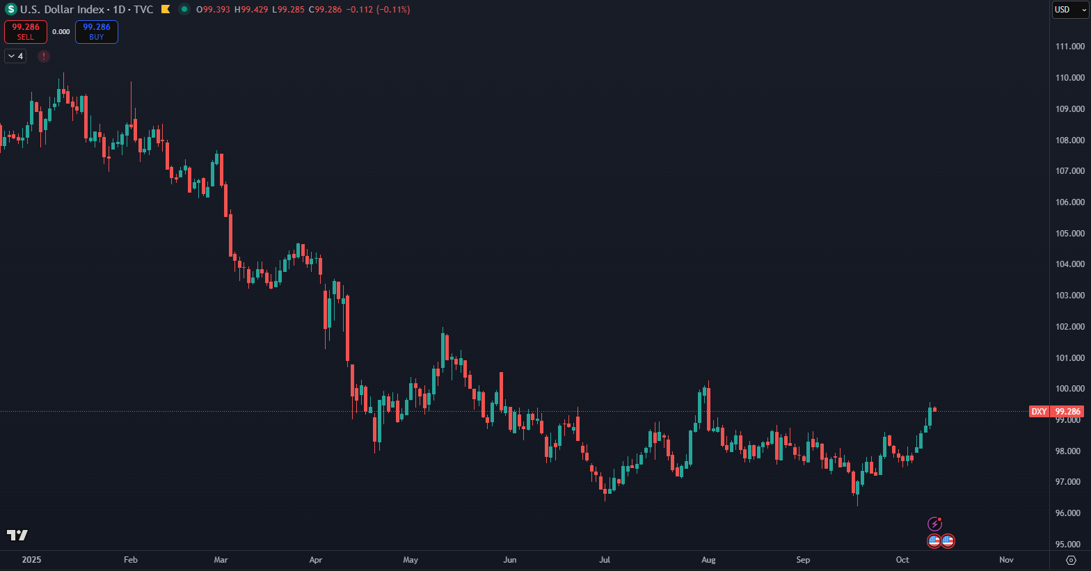 Oslabenie dolárového indexu v roku 2025. Zdroj: tradingview.com