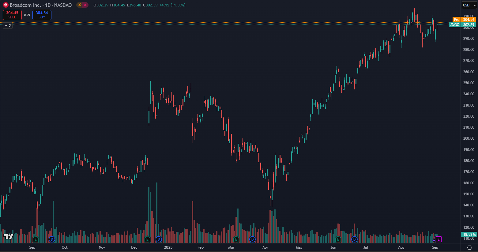Broadcom sa stáva silným konkurentom Nvidie v oblasti umelej inteligencie, uviedla správa Finbold. Akcie Broadcom vzrástli o 100 % na 300 dolárov za posledný rok, zatiaľ čo Nvidia získala 61 % a cenu 170 dolárov, ukazujú údaje TradingView. Tento rast odráža dôveru investorov v Broadcom a jeho čipy pre Google a Meta.