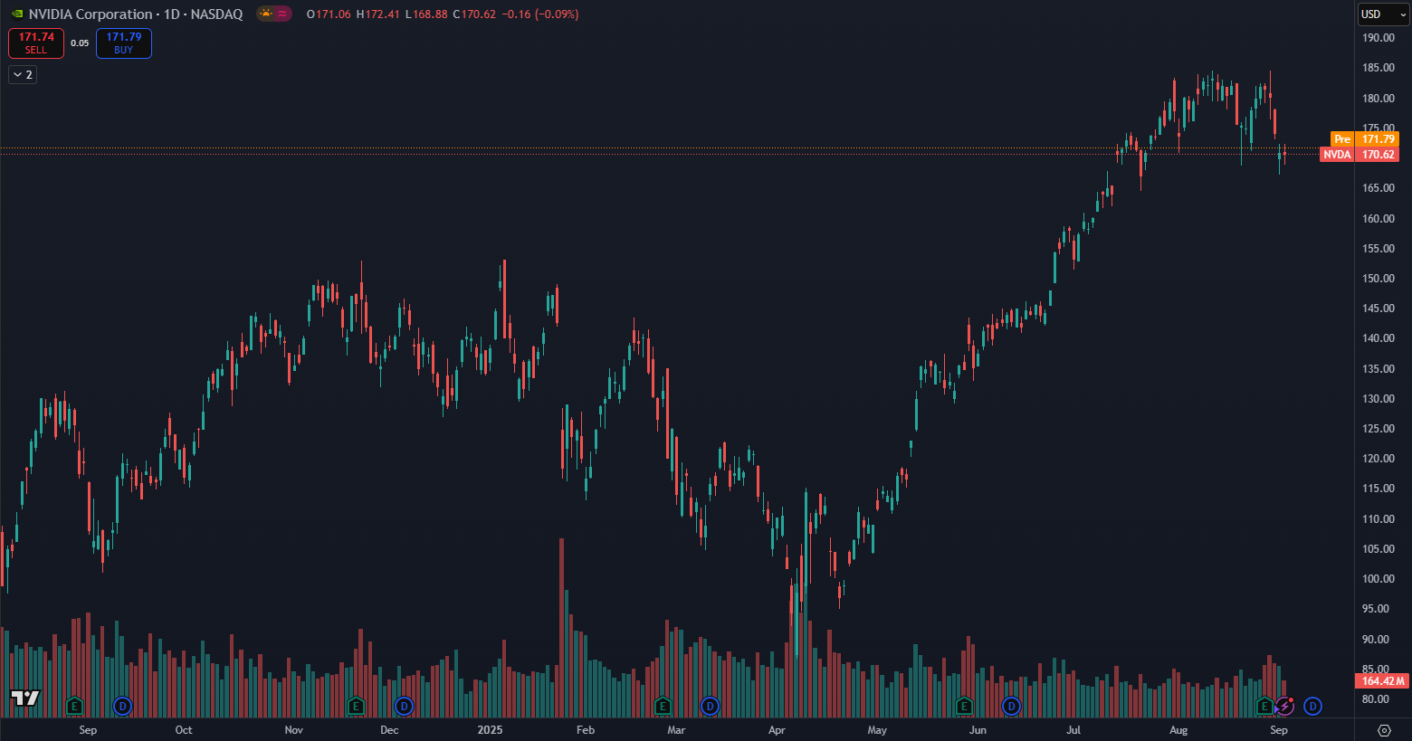 Nvidia naďalej dominuje infraštruktúre poháňanej GPU, s medziročným nárastom príjmov o 56 % s 46,74 miliardami dolárov, z čoho 41,1 miliardy dolárov pochádza z dátových centier. Napriek tomu akcie Nvidie zaostávajú za Broadcomom kvôli rizikám exportných obmedzení do Číny, rastúcej konkurencii a vysokým očakávaniam analytikov.