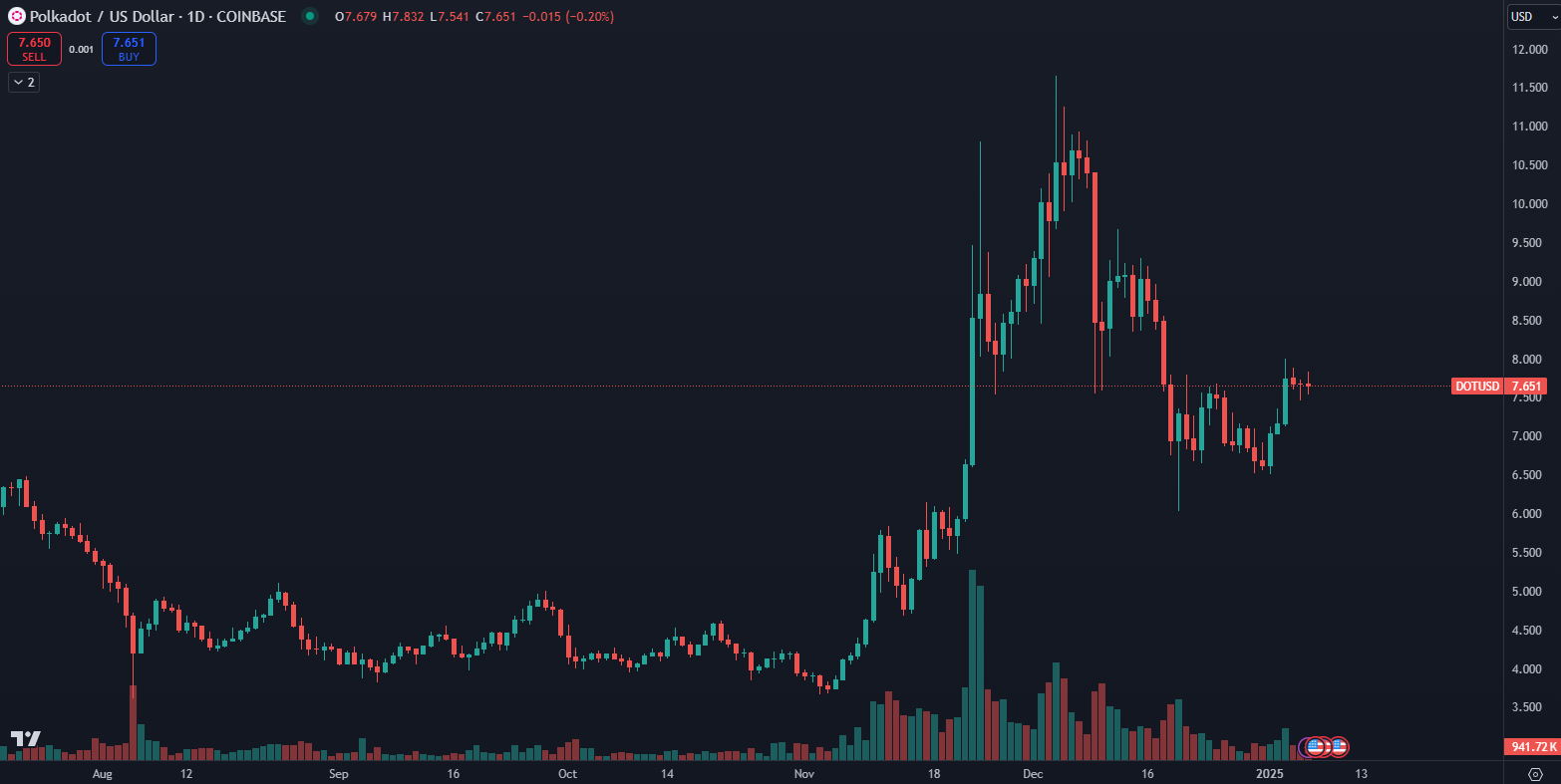 Polkadot (DOT) predstavuje revolučnú blockchainovú sieť, ktorá umožňuje prepojenie rôznych blockchainov a jednoduchú výmenu dát. S aktuálnou cenou 7,65 dolárov a trhovou kapitalizáciou 5,07 miliardy dolárov zaznamenáva denný objem transakcií 78,63 milióna.