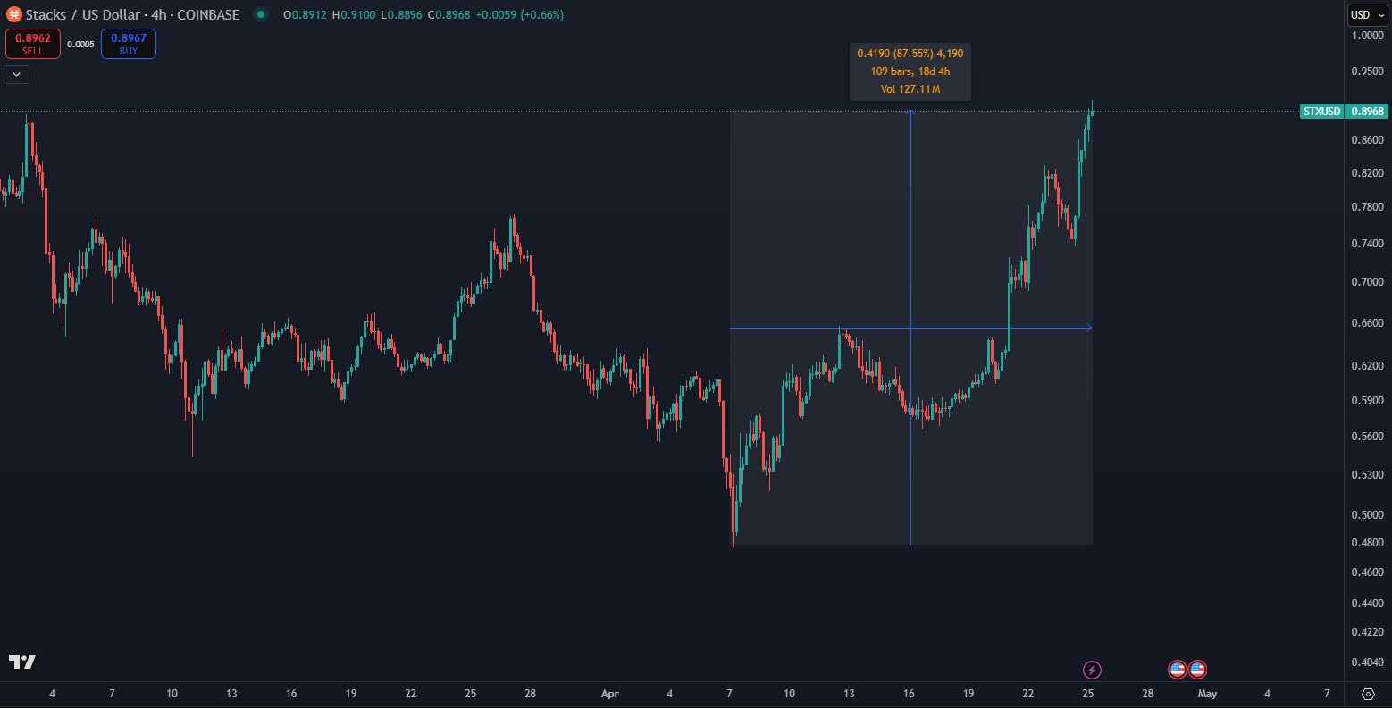 Rast kryptomeny Stacks. Zdroj: tradingview.com