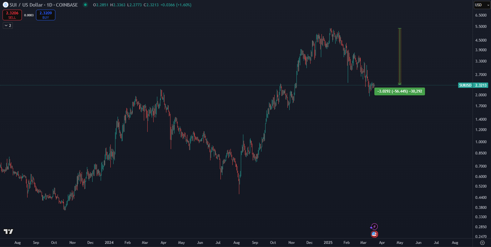 Napriek týmto pozitívnym fundamentom cena SUI podľa údajov TradingView v súčasnosti dosahuje 2,32 dolárov, čo predstavuje pokles o 56 % od historického maxima a po masívnych odomknutiach tokenov uprostred celkového korekčného trhu.