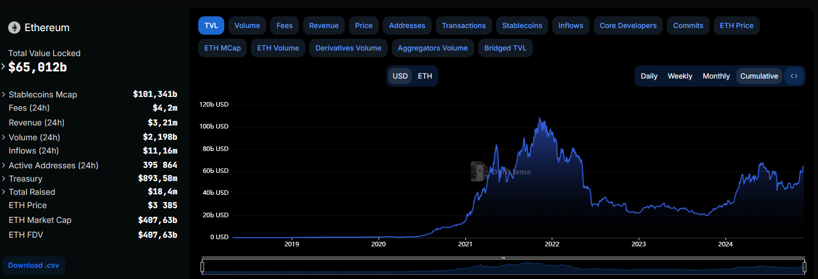 Ethereum zostáva pre skúsených vývojárov a dlhodobých investorov najstabilnejšou a najbezpečnejšou voľbou, potvrdzujú poprední experti z oblasti kryptomien. S impozantným počtom viac ako 400 aktívnych vývojárov mesačne a celkovou uzamknutou hodnotou (TVL) dosahujúcou 65,01 miliardy dolárov podľa údajov DefiLlama si naďalej udržiava dominantné postavenie v dynamicky sa rozvíjajúcom DeFi sektore.