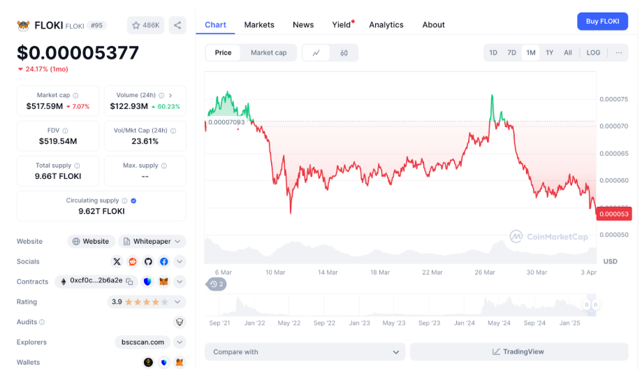 Údaje o kryptomene FLOKI. Zdroj: coinmarketcap.com