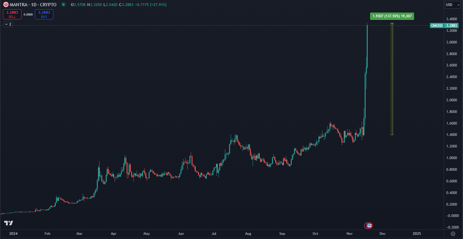 Kryptomena Mantra (OM) prelomila všetky historické maximá a zlomila rekord v ziskovosti. Podľa údajov TradingView len za 4 dni totiž cena stúpla o 140 %, na čo väčšina investorov nebola pripravená. Po miernom raste od začiatku roka došlo k masívnemu vzostupu, vďaka ktorému zbohatol nejeden držiteľ.